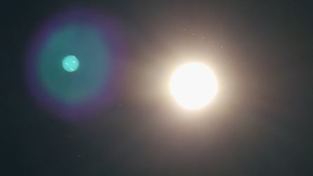他の側面についての話題です。これらはニューヨーク在住の中国人のライトワーカーによって撮られた写真です。青い点はレンズの反射ですが、太陽の周りに小さな白い点々が形を変えながら並んでいるのが見られます。この小さな白い点々は何でしょうか?